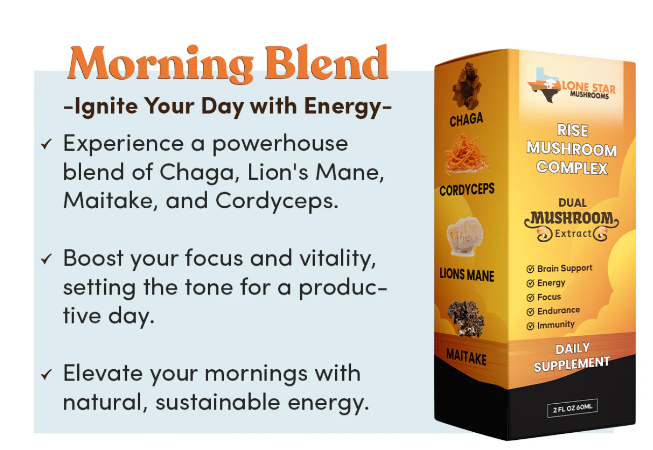 Rise Mushroom Complex is your ultimate daily supplement for energy, focus, and immune support. Made with 100% pure, dual-extracted mushroom fruiting bodies, this blend combines the power of Chaga, Cordyceps, Lion’s Mane, and Maitake to help you feel energized, focused, and resilient every day.